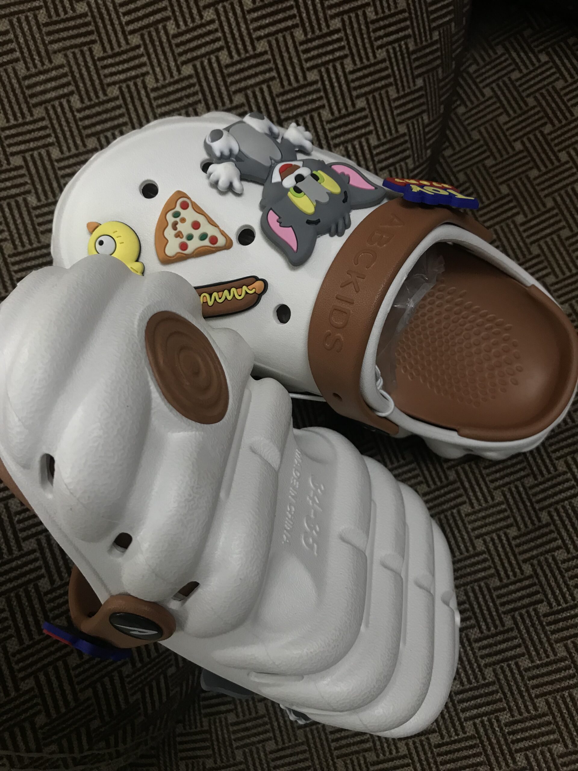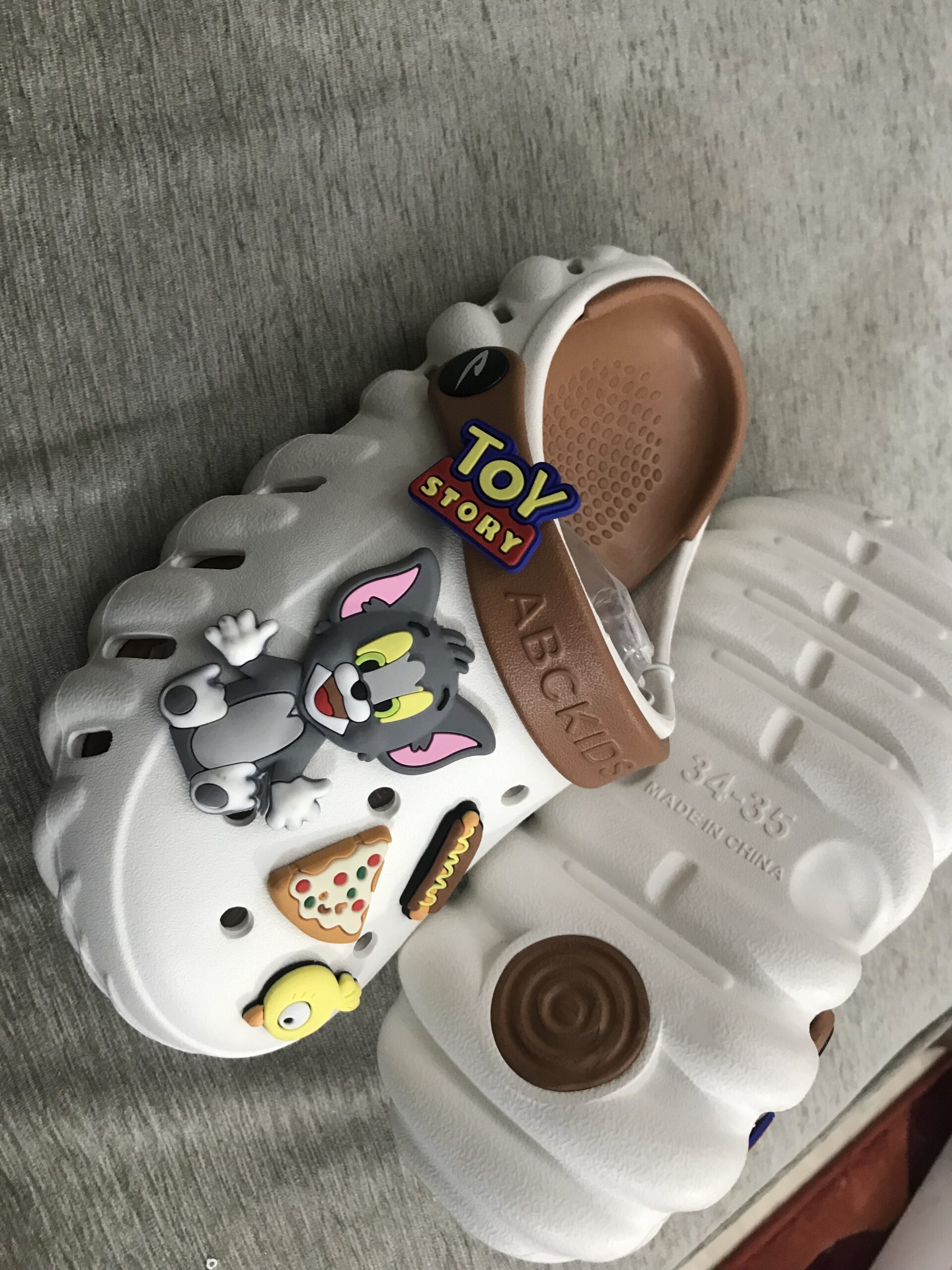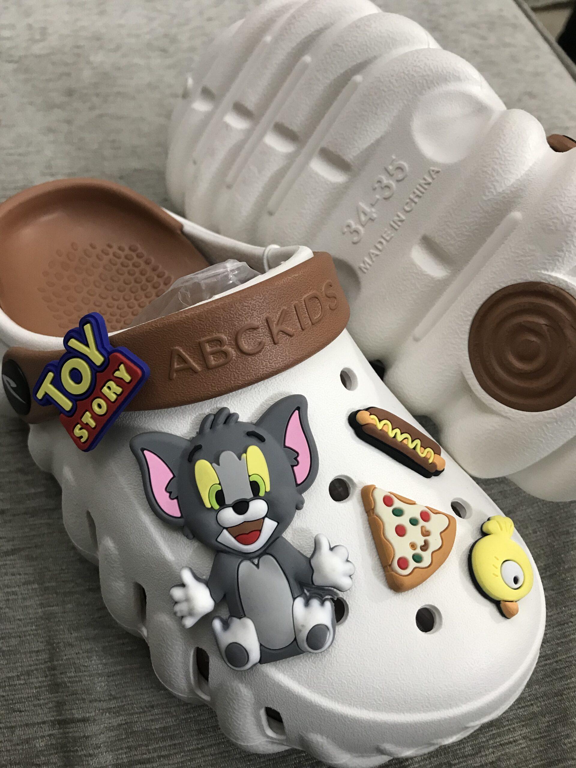 - Playful Design: Decorated with colorful 3D charms including Tom the Cat, Toy Story logos, and fun food items like pizza and hotdogs.