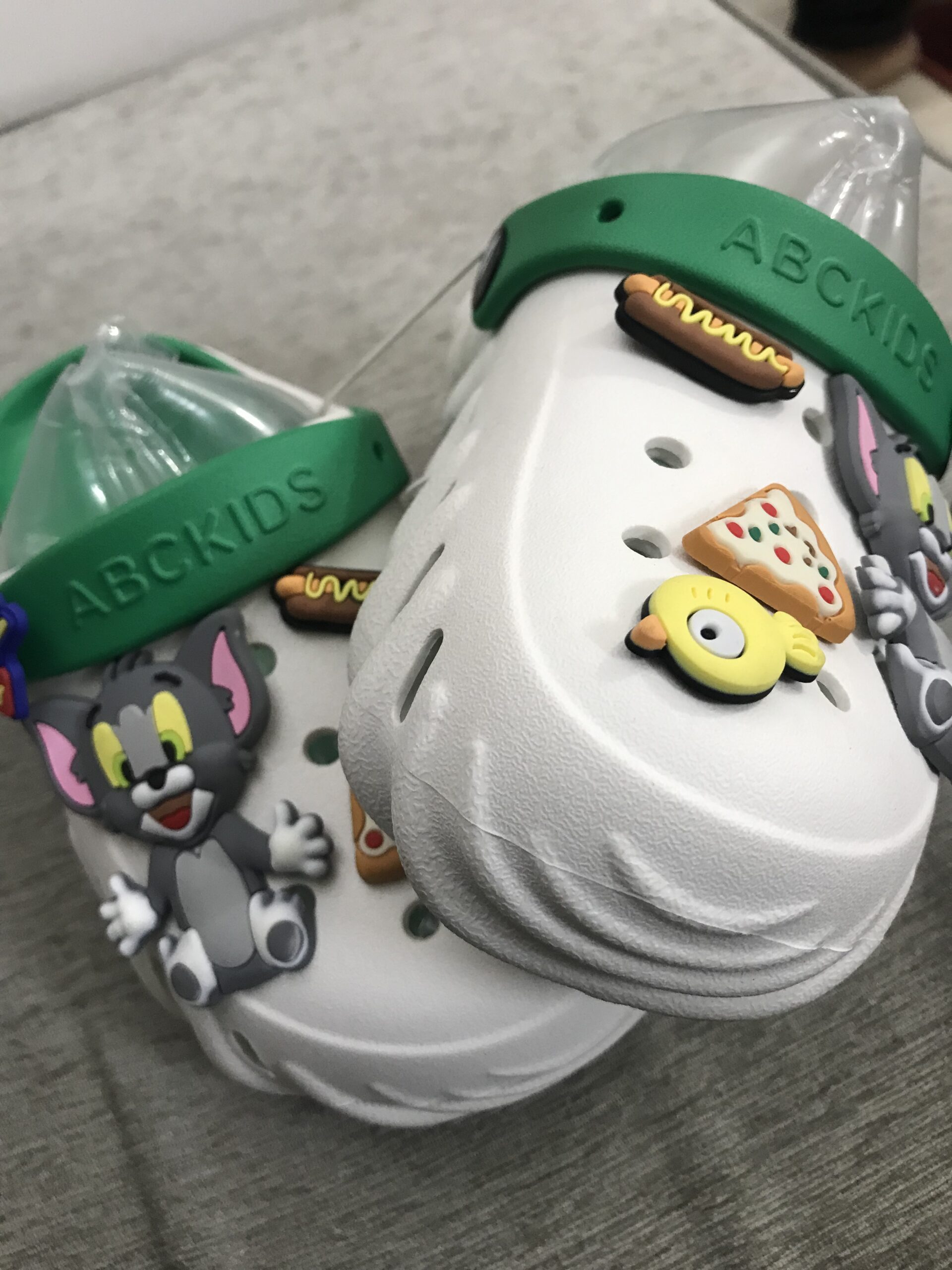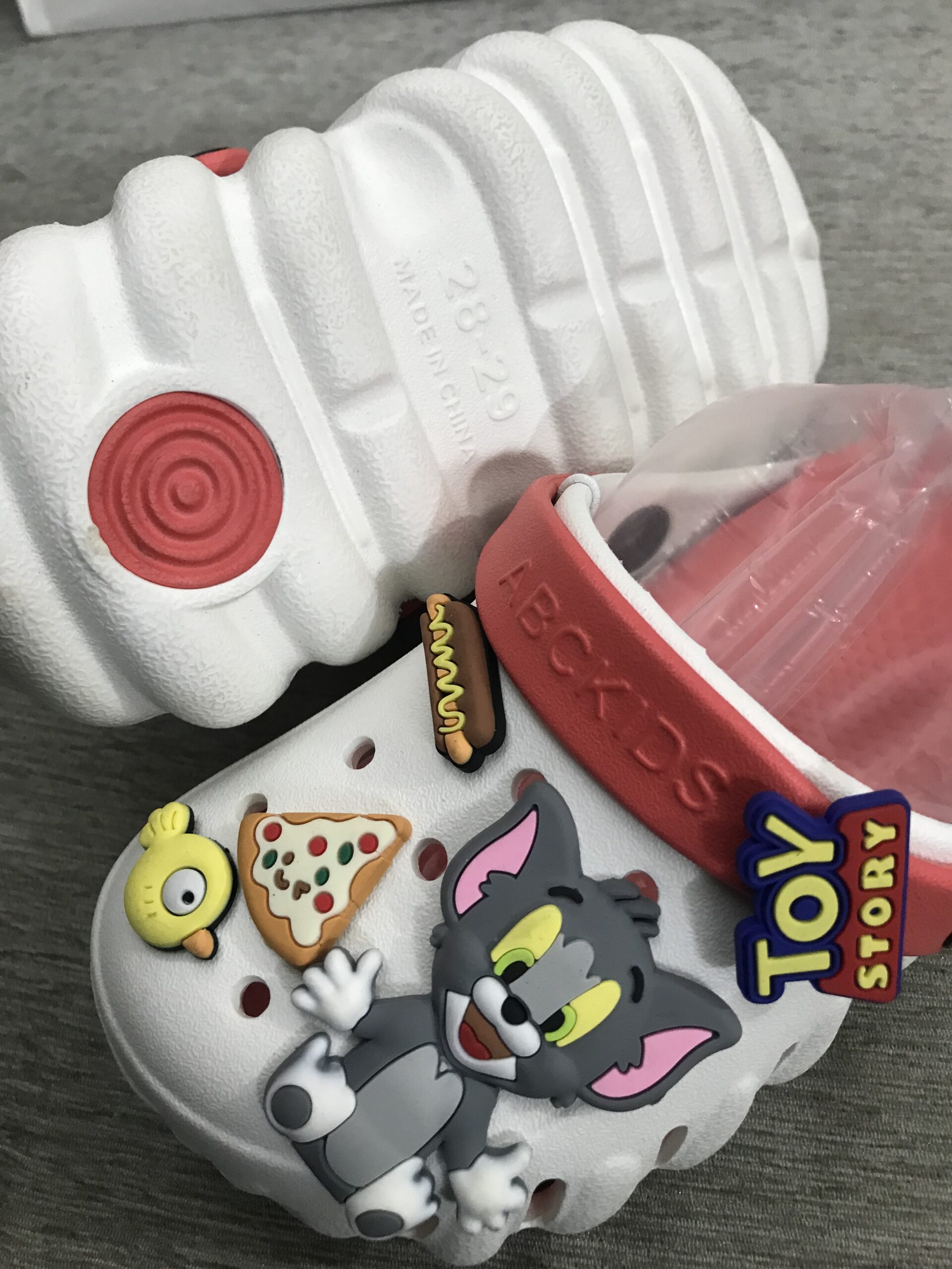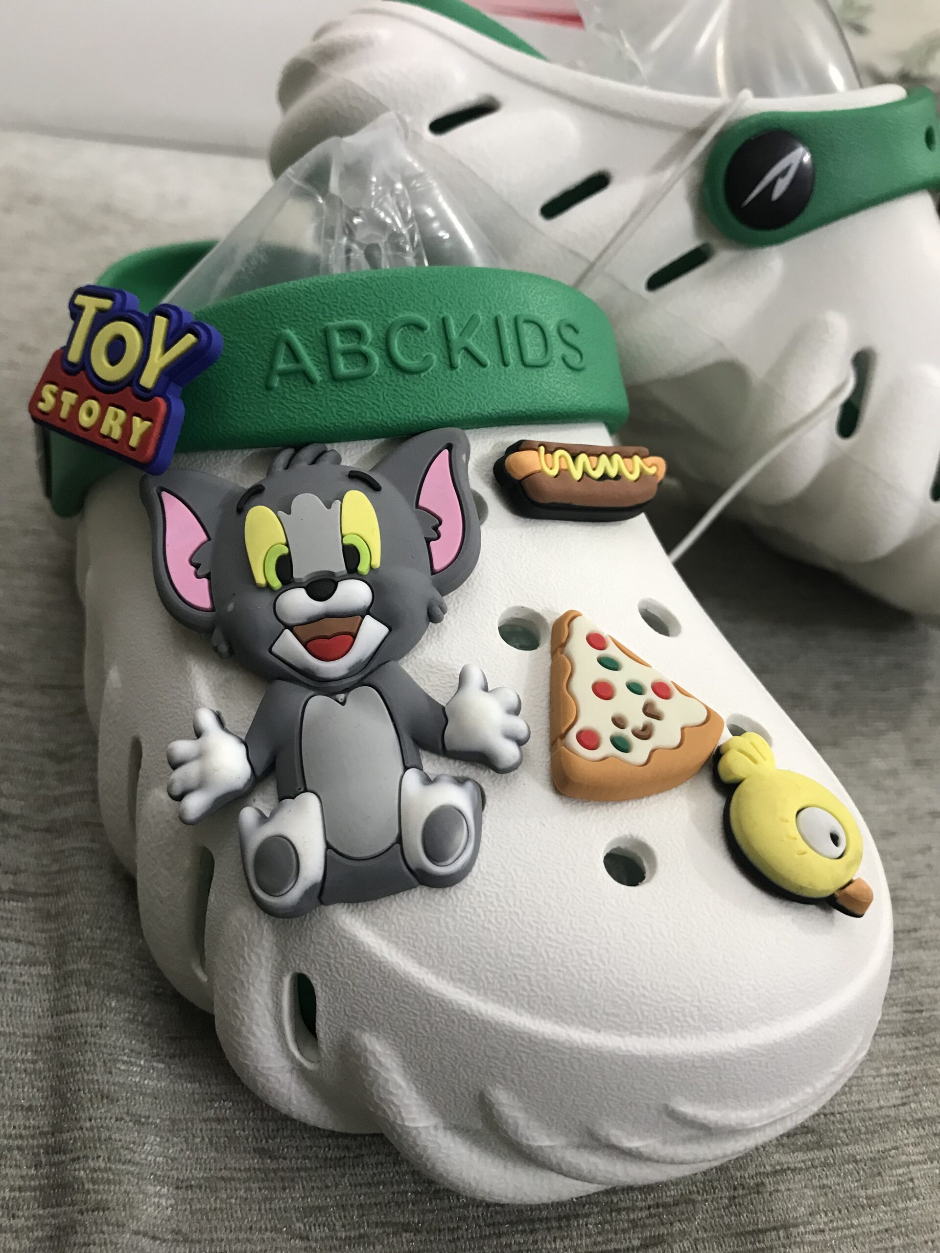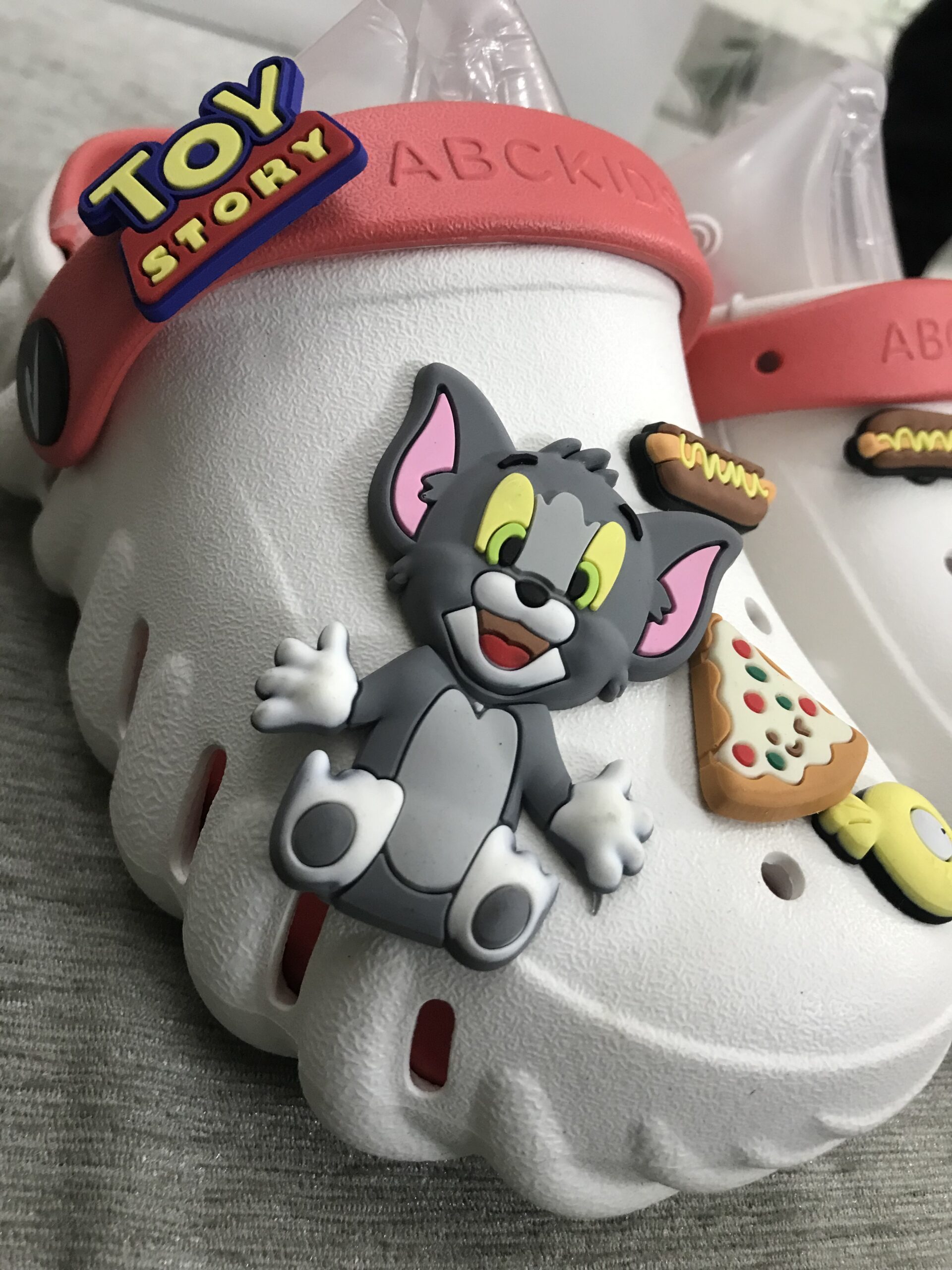 - Playful Design: Decorated with colorful 3D charms including Tom the Cat, Toy Story logos, and fun food items like pizza and hotdogs.