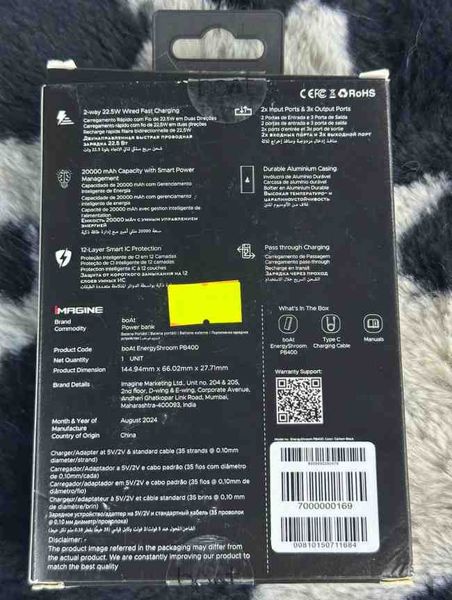 Double the power and double the speed with the boAt Energyshroom PB400. This heavy-duty power bank is built for power users who need high-capacity backup without compromising on safety or charging speed.