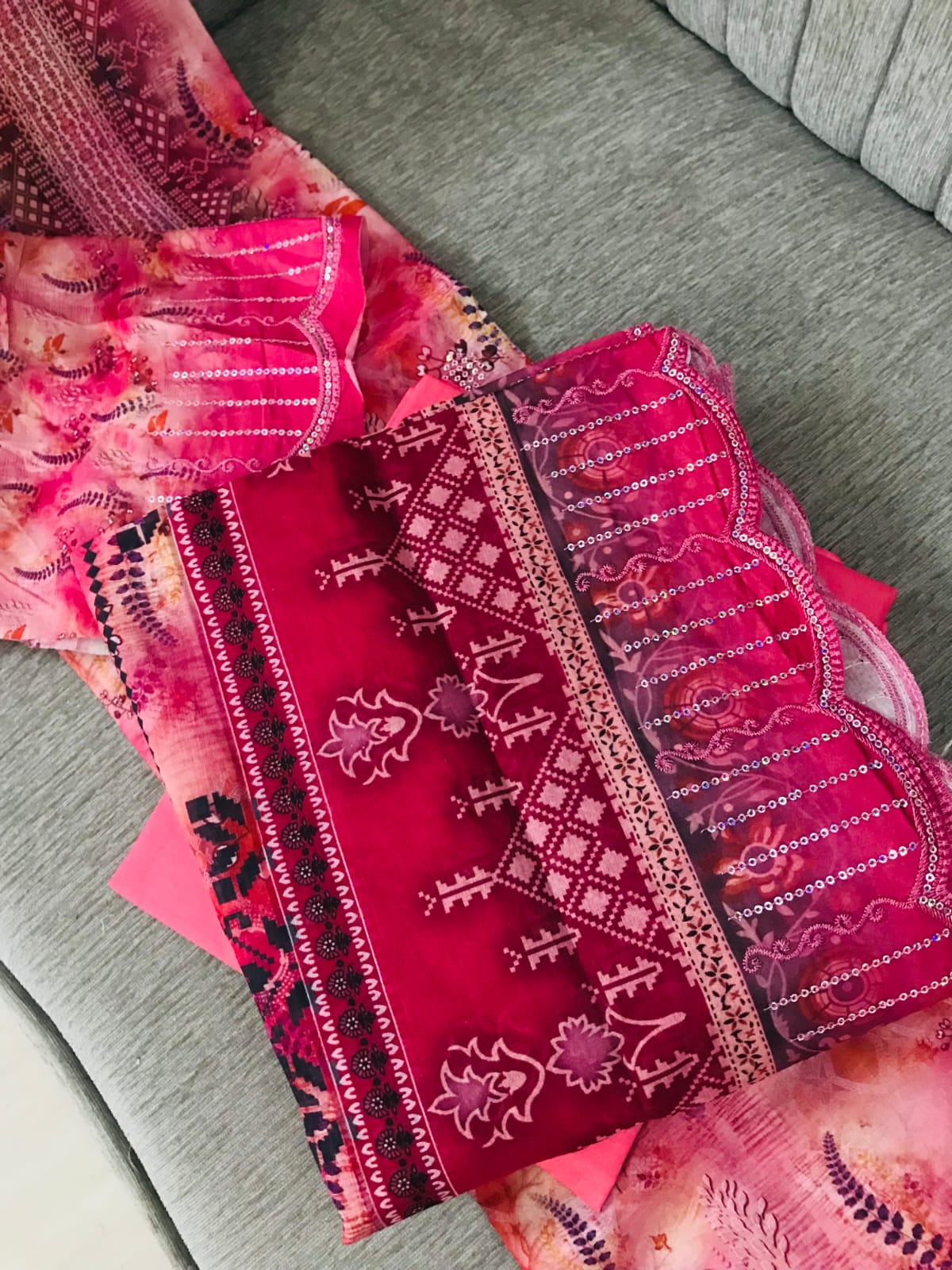 - Salwar (Bottom): Comes with a solid matching pink cotton fabric for the trousers/salwar to balance the vibrant print of the top.